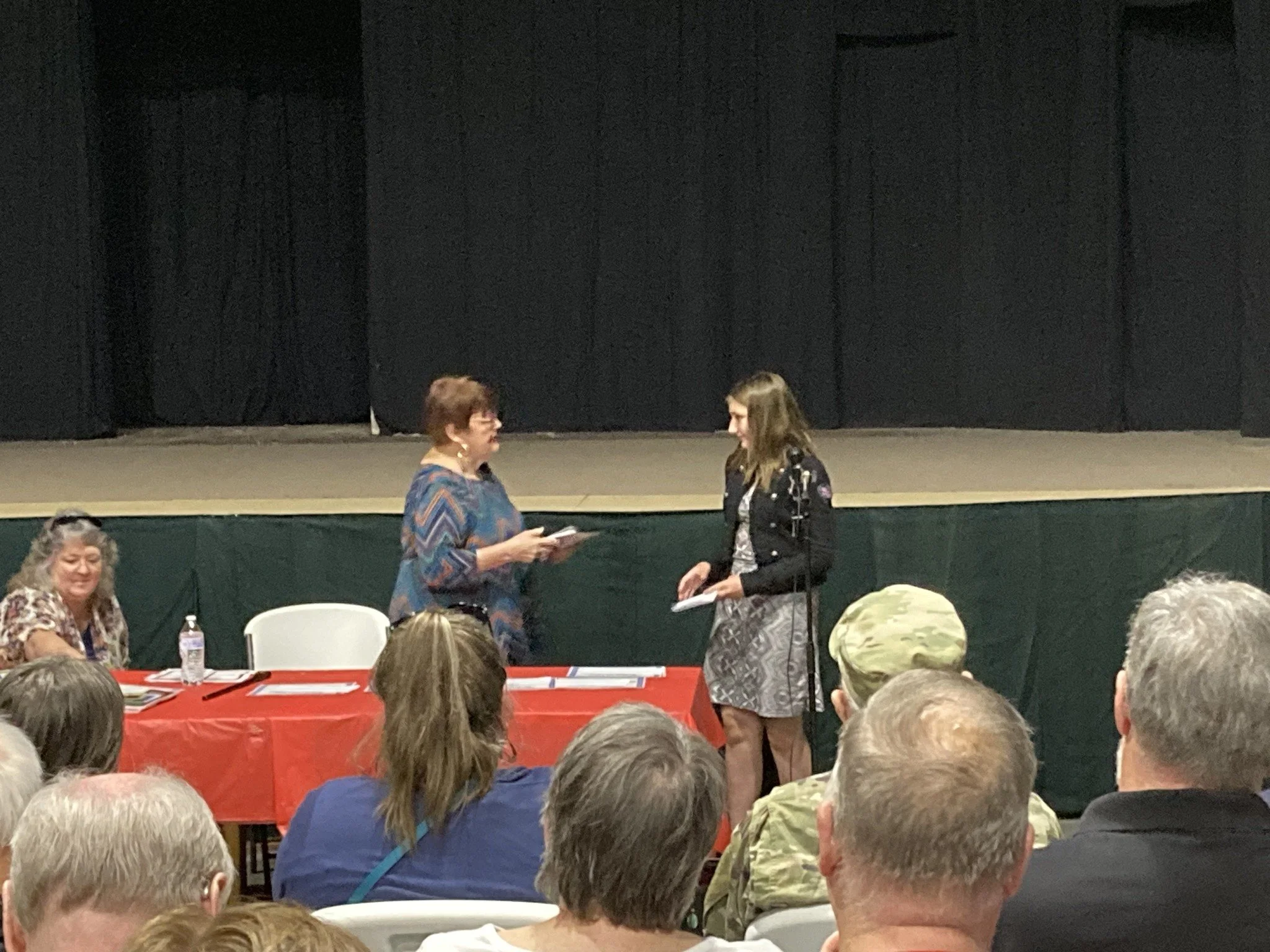 Star-Splitters Oliver, Hadley, Lydia, and Chessie won six out of the eight youth division prizes at the 2023 Kansas Voices Writing Contest, including first place in poetry and in prose. The competition received over 400 entries from across the state. The four Star-Splitters received their awards and gave a public reading of their work at a ceremony held at the Marquee Performing Arts Center in Winfield.